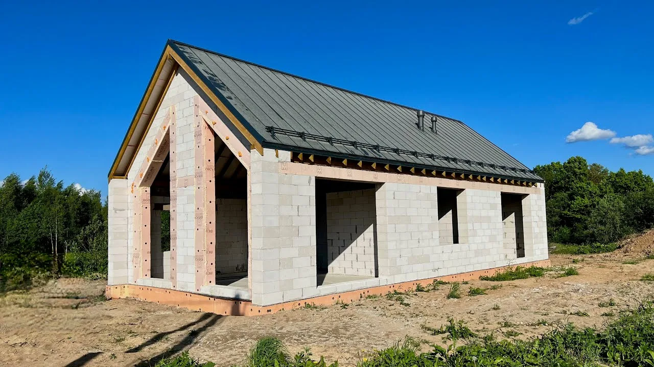Современный дом из газобетонных блоков с высокими показателями теплоизоляции и долговечности. Идеален для постоянного проживания.