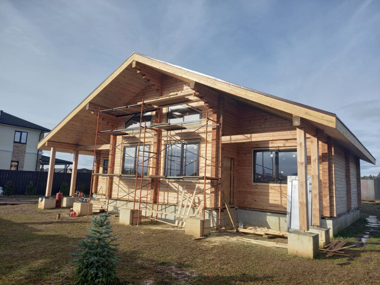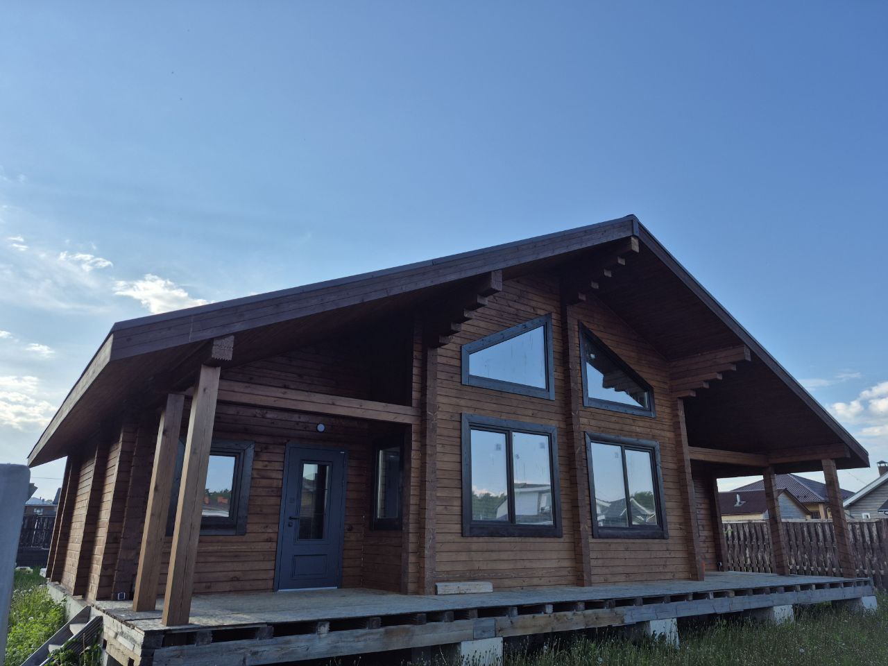 Строительство осуществляется с применением классических технологий рубки «в чашу» или «в теплый угол», что обеспечивает прочность и высокую энергоэффективность конструкции. Дом подходит для всесезонного проживания.